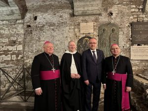 Nitriansky biskup Mons. Viliam Judák sa v dňoch 19. – 22. januára 2023 ako člen delegácie novozvoleného vedenia Konferencie biskupov Slovenska pod vedením jej predsedu košického arcibiskupa metropolitu Mons. Bernarda Bobera zúčastnil na oficiálnej návšteve Ríma a Vatikánu. V delegácii bol aj tajomník nitrianskeho biskupa Miroslav Cimerák. V rámci programu cesty sa členovia delegácie stretli s vatikánskym štátnym sekretárom Mons. Pietrom kardinálom Parolinom, s veľvyslancom SR pri Svätej stolici a Zvrchovanom ráde Maltézskych rytierov Marekom Lisánskym, zúčastnili sa na inaugurácii novej pamätnej tabule nad hrobom sv. Cyrila v Bazilike sv. Klementa pri príležitosti 1160. výročia príchodu sv. Cyrila a Metoda na Veľkú Moravu, navštívili Dikastérium pre komunikáciu kde rokovali s prefektom Paolom Ruffinim, Dikastérium pre biskupov kde rokovali s jej prefektom Mons. Marcom kardinálom Oulletom, a navštívili aj Slovákov ubytovaných v dome prijatia, ktorý spravuje Komunita sv. Egídia. V krypte pri hrobe sv. Petra slávili sv. Omšu a pomodlili sa pri hroboch viacerých pápežov, aj pri nedávno zosnulom a pochovanom emeritnom pápežovi Benediktovi XVI. Na záver cesty delegácia navštívila krajanov v Pápežskom slovenskom kolégiu sv. Cyrila a Metoda, ktoré tento rok oslavuje 60. výročie od svojho požehnania, kde otcovia biskupi spolu s prítomnými kňazmi slávili sv. Omšu. V homílii sa prítomným prihovoril biskup Judák, ktorý ponúkol zamyslenie nad dnešným evanjeliom a hovoril o Cirkvi ako o svätej či apoštolskej: „Ani my dnes po 2000 rokov nevyznávame inú vieru, ako vyznávali apoštoli, ako ju vyznával sv. František či sv. Ignác alebo ľudia v 19. či 20. storočí. Je to tá istá apoštolská viera. A tu v Ríme to cítime oveľa viac, kde je Peter súčasných čias a tá apoštolská postupnosť, ktorou sme dostali aj dar kňazstva je zárukou toho, že naša viera je pravá, apoštolská,“ uviedol biskup Judák.