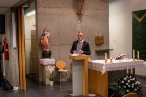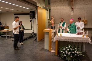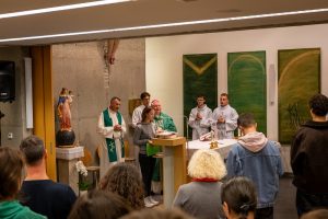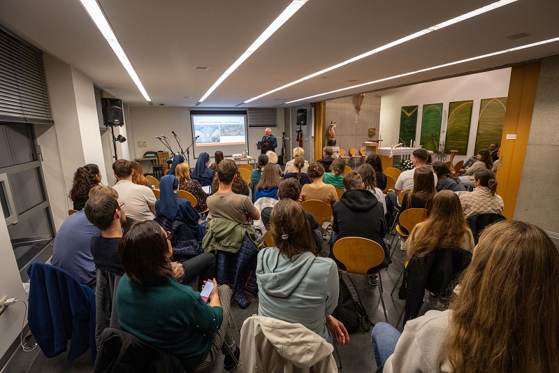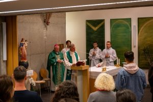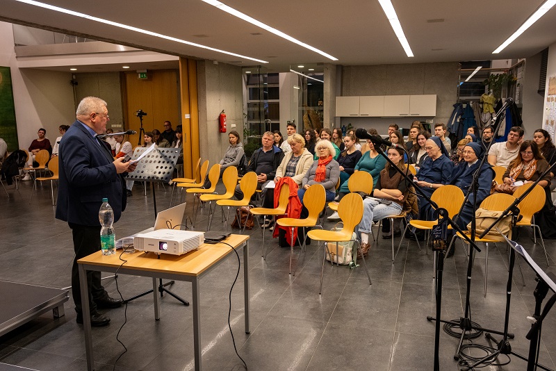 Po slávnostnom Veni Sancte pri príležitosti otvorenia nového akademického roka na nitrianskych univerzitách 29. septembra, sa život v Univerzitnom pastoračnom centre Pavla Straussa v Nitre rozbehol na plné obrátky. Začali sa uskutočňovať pravidelné a mnohé už aj tradičné formačné, bohoslužobné, kultúrne i voľnočasové aktivity. Jednou z nich sú aj  tradičné formačné a vieroučné prednášky v rámci tematických cyklov. A tak v rámci  cyklu „Veľký kurz o Duchu Svätom a živote v ňom“ sa v priestoroch nitrianskeho UPC 6. októbra 2025 uskutočnila pondelková prednáška pod názvom „Duch Boží v dejinách Cirkvi“, ktorej sa zhostil nitriansky biskup Mons. Viliam Judák. Po skončení prednášky celebroval biskup Viliam spolu s rektorom UPC Ľubomírom Hladom pre prítomných študentov a účastníkov prednášky svätú omšu.