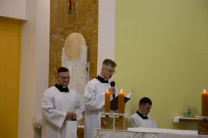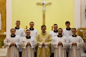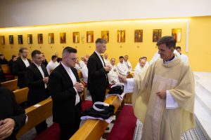 V seminárskej kaplnke Kňazského seminára sv. Gorazda v Nitre  sa  14. októbra 2025 stretli bohoslovci z diecéz západnej provincie s predstavenými seminára na slávnostnej svätej omši, ktorú celebroval generálny vikár Žilinskej diecézy Mons. Martin Kramara. Počas nej prijali bohoslovci tretieho ročníka diakonskú a kňazskú kandidatúru, spojenú s obliečkou reverendy. Mons. Kramara vo svojom príhovore všetkých povzbudil v pokore a odvahe na ceste k povolaniu a požehnal ich reverendy, ktoré si hneď obliekli. Liturgickú slávnosť hudobne sprevádzal Zbor cirkevných hudobníkov Štátneho konzervatória pod vedením Hildy Gulyásovej. Bratom tretiakom gratulujeme a pozývame k modlitbám za nové kňazské a rehoľné povolania a za upevnenie tých, ktorých si už Pán vyvolil.