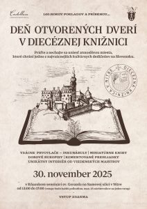 Pri príležitosti 140. výročia zriadenia Diecéznej knižnice v Nitre, sa dňa 30. novembra 2025 bude konať Deň otvorených dverí v Diecéznej knižnici pre širokú verejnosť. Knižnica je súčasťou budovy Kňazského seminára sv. Gorazda. na Samovej ulici v Nitre. Vzhľadom na kapacitu priestorov budú záujemcovia do knižnice vstupovať každých 30 minút v skupinách, maximálne 25 osôb na jeden vstup. Deň otvorených dverí sa začne o 13,00 hod a potrvá do 17,00 hod. Všetci sú srdečne pozvaní!