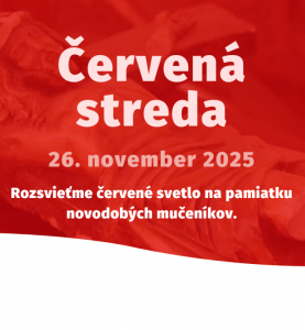 V stredu 26. novembra 2025 počas Červenej stredy sa na Slovensku aj v ďalších štátoch sveta vysvietia kostoly, pamiatky či iné významné monumenty načerveno. Táto farba je symbolom preliatej krvi novodobých mučeníkov, kresťanov trpiacich pre svoju vieru. Zapojiť sa môžu nielen obce, farnosti a cirkevné školy, ale aj inštitúcie či jednotlivci – červeným svetlom a oblečením, modlitbou alebo zdieľaním príbehov tých, ktorí nemôžu slobodne vyznávať svoju vieru. Viac ako 220 miliónov kresťanov žije v krajinách, kde sú pre svoju vieru priamo vystavení prenasledovaniu. Zistenia z najnovšej Správy o stave náboženskej slobody vo svete 2025 opätovne potvrdzujú, že kresťania sú najviac prenasledovanou náboženskou skupinou. V stredu 26. novembra 2025 si tak aj na Slovensku pripomenieme ich osudy tradičnou iniciatívou pod názvom Červená streda. Načerveno budú svietiť kostoly i pamiatky aj v Nitrianskej diecéze, ako napríklad Nitriansky hrad, a viaceré farské chrámy. Viac k tomu, ako sa dá zapojiť na linku:  Červená streda 2025: Pomôžme prenasledovaným kresťanom