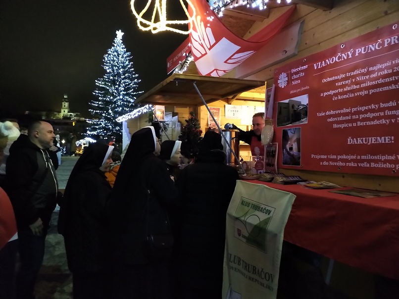 Diecézna charita v Nitre v dňoch 11. – 14. decembra 2025 prevzala štafetu a zorganizovala už v poradí 16. ročník Tradičného vianočného punču pre Hospic u Bernadetky v Nitre. Pri zabezpečení jeho priebehu mimoriadne intenzívne pomohli pôvodní organizátori tohto charitatívneho podujatia, ktorými boli dobrovoľníci Maltézskeho rádu pôsobiaci v Nitre aj priamo aj v Hospici u Bernadetky, a k nim sa pripojili aj nádejní noví dobrovoľníci z radov študentov Gymnázia sv. Cyrila a Metoda v Nitre a Piaristického gymnázia sv. Jozefa Kalazanského v Nitre. V stánku na Svätoplukovom námestí obetavo podávali kvalitný originálny punč navarený podľa starej receptúry námorníkov stredovekej Maltézskej flotily, za ktorý obyvatelia Nitry a návštevníci Adventného mestečka zaplnili pokladničky svojimi dobrovoľnými finančnými príspevkami na podporu chodu hospicu, čím potvrdili nielen kvalitu tradičného punču vareného v Nitre od roku 2009, ale aj zmysel a význam tejto dlhoročnej aktivity. Podporiť ich preto prišiel aj nitriansky biskup Mons. Viliam Judák a pomocný nitriansky biskup Mons. Peter Beňo, rehoľné sestry z komunít rehole Notre Dame z Beckova, Premonštrátiek z Nitry a Vrbového, Dcér našej milej Matky Najsvätejšieho Srdca Ježišovho z Kiribati, rehoľníci z reholí Salvatoriánov, Misionárov Najsvätejšieho srdca Ježišovho a Piaristov pôsobiacich v Nitre, kňazi nitrianskych farností so svojimi veriacimi a široká verejnosť z Nitry a okolia. Množstvo návštevníkov charitatívneho stánku a darcov znovu potvrdili, že vnímajú túto aktivitu v Nitre ako mimoriadne významnú a s dôverou v jej dlhoročných organizátorov ju podporujú najmä preto, že chcú pomôcť pomáhať Hospicu v Nitre, v ktorom pacienti v dôstojnom prostredí, starostlivej opatere a bez bolesti končia svoju pozemskú púť v terminálnych štádiách nevyliečiteľných ochorení.