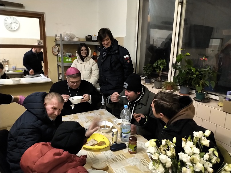 Pri príležitosti 9. Svetového dňa chudobných, ktorý sa konal a slávil na 33. nedeľu v roku 2025, sa v Dome charity sv. Rafaela v Nitre v nedeľu 18. januára 2026 konal preložený slávnostný večer. Počas neho za prítomnosti nitrianskeho pomocného biskupa Mons. Petra Beňa, riaditeľa Diecéznej charity v Nitry Juraja Baráta vedúcej domu Kláry Labošovej už tradične dobrovoľníci Maltézskeho rádu pôsobiaci v Nitre v spolupráci s majiteľom Reštaurácie ARTIN v Nitre Andrejom Berkešom ľuďom bez domova ako klientom nízkoprahovej nocľahárne servírovali slávnostnú večeru a povzbudzujúce slová. Večera servírovaná ľuďom bez domova ako pánom chudobným bola symbolickým prejavom záujmu a blízkosti marginalizovanej skupine našej spoločnosti, ktorí mohli aspoň jeden deň v roku intenzívnejšie pocítiť, že Boh ani Cirkev nad nimi nezlomili palicu, ale podľa možností pre nich robia aspoň niečo, aby sa necítili úplne odkopnutí spoločnosťou napriek tomu, že ich neľahké a často smutné osudy sú len v ich rukách. Boli za to mimoriadne vďační a svoju vďaku a pocit radosti v týchto chvíľach neskrývali a odmenili aplauzom. Aspoň raz v roku si tak mohli dopriať dvojchodovú večeru, či koláče, zákusky a kávu, ktorú im dobrovoľníci servírovali ako v reštaurácii. Nechýbali ani slová povzbudenia a spoločná modlitba s biskupom Petrom, ktorý spoločne s nimi ochutnal menu, ktoré pre nich bolo pripravené.