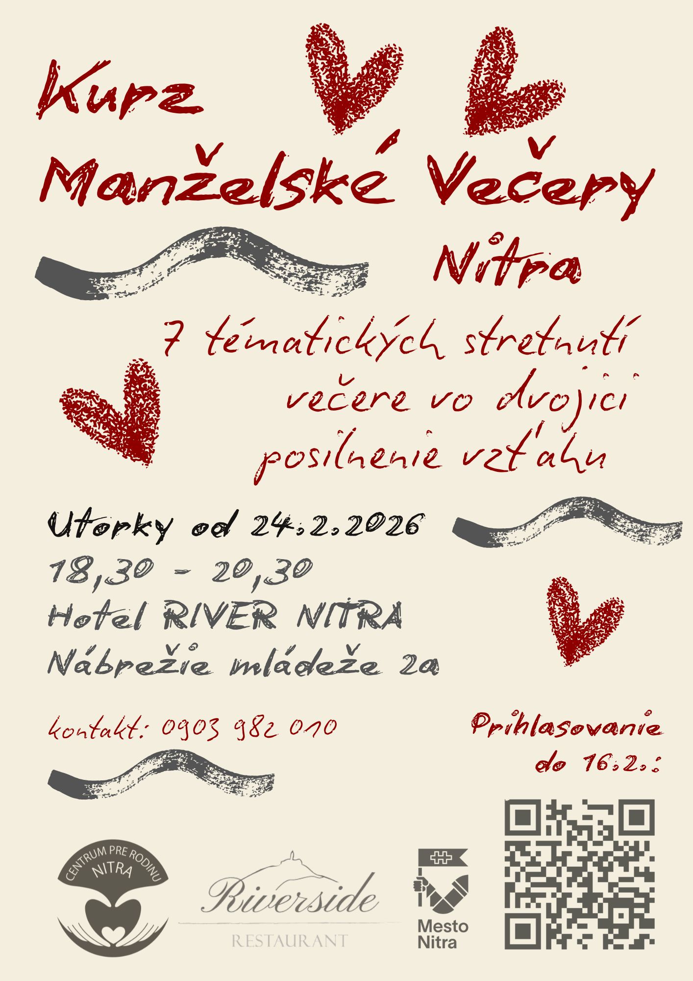 Do 16.2. je tiež možné sa prihlásiť na Kurz manželské večery, skladajúci sa zo 7 tématických stretnutí na posilnenie manželstva.