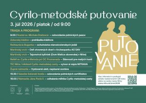 Urobte program pre deti na začiatku prázdnin. Pozývame veľkých aj malých, mladých aj starých na nenáročné turisticko-pútnické podujatie so zastávkami pri pamiatkach spojených s veľkomoravskou tradíciou, so zbieraním pečiatok do pútnických pasov a na záver putovania na Nitrianskom hrade dostane každý pútnik certifikát o absolvovaní cesty, spomienkové predmety a voľnú vstupenku do areálu Nitrianskeho hradu. Podujatie sa bude konať v piatok 3. júla 2026. Doprava do Dražoviec individuálne, po cyklotrase, alebo spojom MHD č. 4.