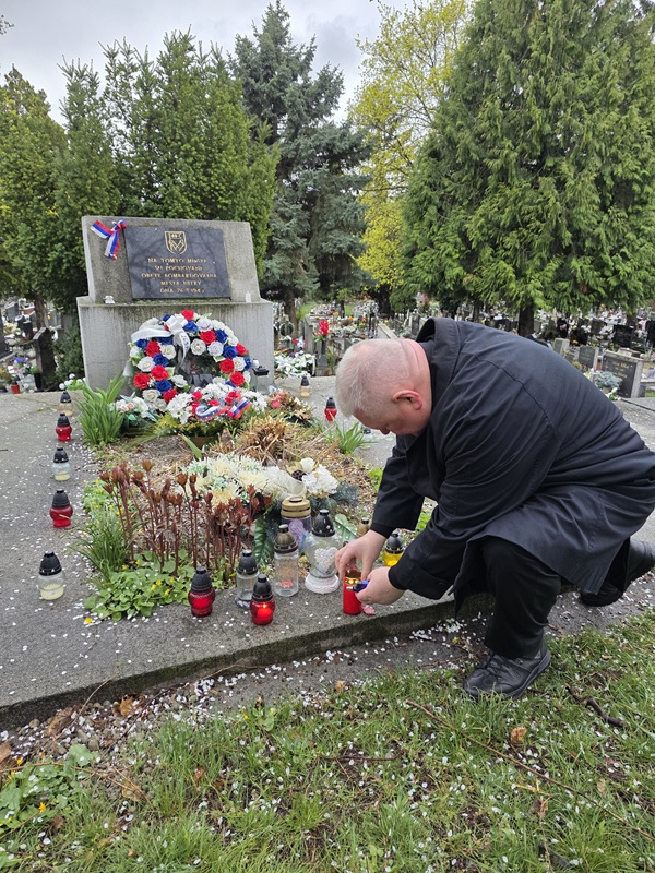 Zapálené sviece a modlitba biskupa Viliama za obete bombardovania mesta Nitra v roku 1945