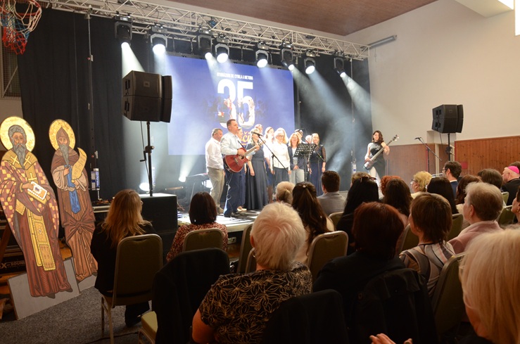 Pri príležitosti 35. výročia zriadenia Gymnázia sv. Cyrila a Metoda v Nitre, sa 16. apríla 2026 v priestoroch školy uskutočnili oslavy tohto vzácneho jubilea v duchu odkazu sv. pápeža Jána Pavla II. „Minulosť si pripomínajte s vďačnosťou. Prítomnosť žite s nadšením. A do budúcnosti hľaďte s dôverou.“  Slávenie jubilea otvorila slávnostná svätá omša v Kostole Navštívenia Panny Márie, ktorej hlavným celebrantom bol nitriansky biskup Mons. Viliam Judák, a spolu s ním koncelebrovali aj pomocný nitriansky biskup Mons. Peter Beňo a emeritný ordinár OS a OZ SR Mons. František Rábek, univerzitní, školskí kňazi a farári mestských farností z Nitry. Na svätej omši boli prítomní popri riaditeľovi školy Radoslavovi Rusňákovi aj pedagógovia, zamestnanci, študenti a široká verejnosť. Biskup Rábek ako slávnostný kazateľ vo svojom príhovore hovoril  v súvislosti s jubilujúcou školou o jej minulosti, prítomnosti a budúcnosti, a k tomu patriacim postojom vďačnosti, zodpovednosti a nádeji. Priblížil jej vznik, pri ktorom v tom čase aj osobne stál a poďakoval všetkým, ktorí sa o založenie školy zaslúžili, pričom spomenul najmä prvého riaditeľa Karola Križalkoviča. Vyjadril vďaku všetkým, od riaditeľov, učiteľov, zamestnancov, či mnohých žiakov, ktorí pre školu za tie roky čokoľvek urobili a v závere povzbudil prítomných k vďačnosti Bohu, životu  vo viere, zodpovednému plneniu povinností a v priestore školy aj k využívaniu možnosti návštevy školskej kaplnky. V závere liturgickej slávnosti poďakovali zástupcovia žiakov biskupom Viliamovi, Petrovi a Františkovi za podporu, pomoc, starostlivosť a povzbudzovanie pri jej fungovaní a rozvoji.  Oslavy jubilea pokračovali  slávnostným kultúrnym programom za účasti otcov biskupov, primátora mesta Nitra Mareka Hattasa a ďalších hostí. Úvodný príhovor predniesol súčasný riaditeľ školy Radoslav Rusňák. Slávnostnému zhromaždeniu sa prihovoril aj primátor mesta, ktorý zároveň odovzdal riaditeľovi školy Ďakovný list primátora mesta Nitra za prínos v oblasti vzdelávania mládeže. Počas programu zazneli popri kultúrnych vystúpeniach žiakov aj spomienky pedagógov, či prezentácia dokumentárneho filmu o histórii školy. Dôstojná oslava jubilea školy bola prejavom vďaky za Božie dobrodenia a úcty ku všetkým, ktorí sa na tomto diele podieľali.
