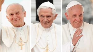 Katolícka cirkev si v týchto dňoch pripomína troch posledných pápežov: sv. Jána Pavla II., Benedikta XVI. a Františka. Prvý menovaný zomrel 2. apríla 2005, druhý sa narodil 16. apríla pred 99 rokmi a tretí zomrel minulý rok 21. apríla.  V Ríme i vo svete prebiehajú výstavy a modlitby, ktoré uctievajú ich životy a duchovné dedičstvo, ktoré nám zanechali. Pripojme sa aj my v modlitbách za nich!