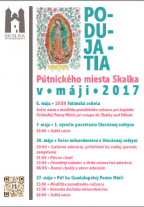 Skalka (5. mája) Prinášame prehľad duchovných podujatí Pútnického miesta Skalka v mesiaci máj: