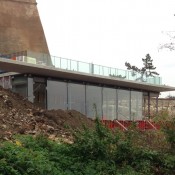 Z tohto dôvodu bola navrhnutá výstavba objektu, ktorý tieto služby na hrade zastrešil a výstavba chodníkov, ktoré by prepojili parkoviská s hradom. Už od roku 2013 prebiehal na mieste stavby objektu archeologický výskum, ktorý odkryl časti múru z 12. storočia. V rámci výstavby boli tieto múry odkopané, vyčistené, zakonzervované a ponechané odkryté pred zrakom návštevníkov. Samotný objekt je zasadený pod bývalú úroveň terénu tak, aby nenarúšal siluetu hradu.